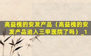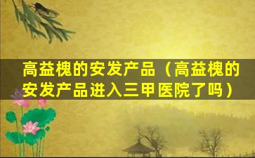 高益槐的安发产品(高益槐的安发产品进入三甲医院了吗)