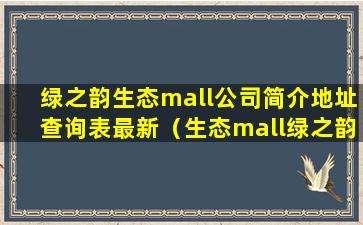 绿之韵生态mall公司简介地址查询表最新(生态mall绿之韵厂家客服电话是多少)