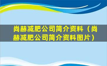 尚赫减肥公司简介资料(尚赫减肥公司简介资料图片)