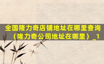 全国隆力奇店铺地址在哪里查询(隆力奇公司地址在哪里)