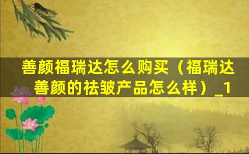 善颜福瑞达怎么购买(福瑞达善颜的祛皱产品怎么样)
