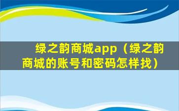 绿之韵商城app(绿之韵商城的账号和密码怎样找)