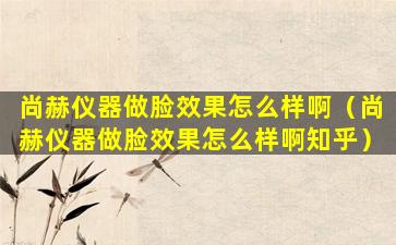 尚赫仪器做脸效果怎么样啊(尚赫仪器做脸效果怎么样啊知乎)