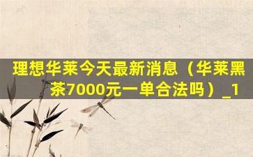理想华莱今天最新消息(华莱黑茶7000元一单 合法吗)