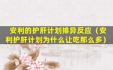 安利的护肝计划排异反应(安利护肝计划为什么让吃那么多)