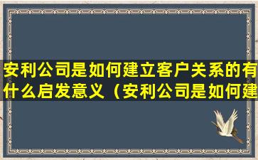 安利公司是如何建立客户关系的有什么启发意义(安利公司是如何建立客户关系的有什么启发意义)