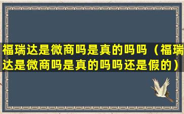 福瑞达是微商吗是真的吗吗(福瑞达是微商吗是真的吗吗还是假的)