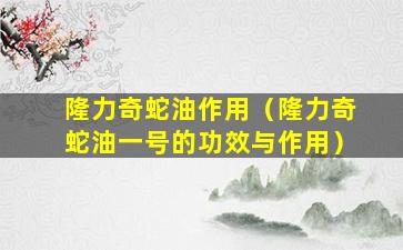 隆力奇蛇油作用(隆力奇蛇油一号的功效与作用)