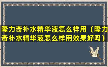 隆力奇补水精华液怎么样用(隆力奇补水精华液怎么样用效果好吗)