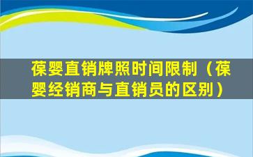 葆婴直销牌照时间限制(葆婴经销商与直销员的区别)