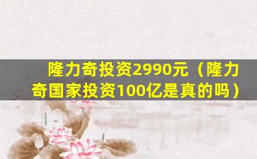 隆力奇投资2990元(隆力奇国家投资100亿是真的吗)