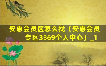 安惠会员区怎么找(安惠会员专区3369个人中心)