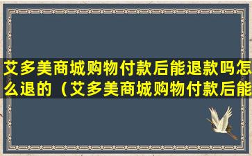 艾多美商城购物付款后能退款吗怎么退的(艾多美商城购物付款后能退款吗怎么退的呢)