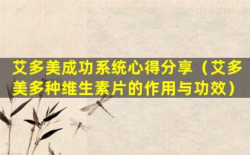 艾多美成功系统心得分享(艾多美多种维生素片的作用与功效)