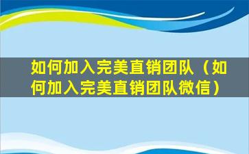 如何加入完美直销团队(如何加入完美直销团队微信)