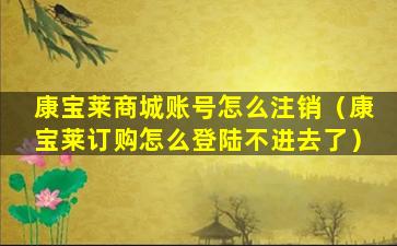 康宝莱商城账号怎么注销(康宝莱订购怎么登陆不进去了)