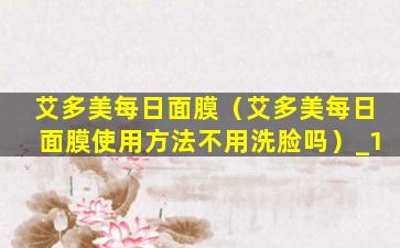 艾多美每日面膜(艾多美每日面膜使用方法不用洗脸吗)