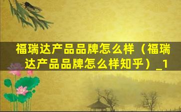 福瑞达产品品牌怎么样(福瑞达产品品牌怎么样知乎)