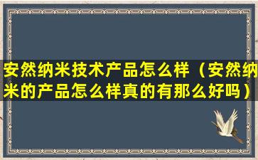安然纳米技术产品怎么样(安然纳米的产品怎么样真的有那么好吗)