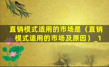直销模式适用的市场是(直销模式适用的市场及原因)