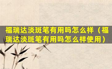 福瑞达淡斑笔有用吗怎么样(福瑞达淡斑笔有用吗怎么样使用)