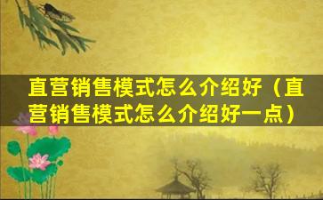 直营销售模式怎么介绍好(直营销售模式怎么介绍好一点)