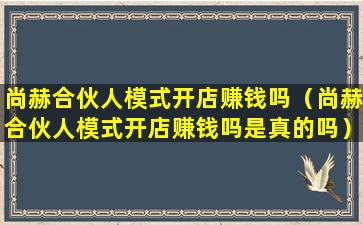 尚赫合伙人模式开店赚钱吗(尚赫合伙人模式开店赚钱吗是真的吗)