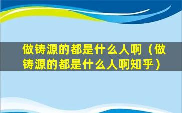 做铸源的都是什么人啊(做铸源的都是什么人啊知乎)