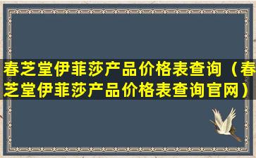 春芝堂伊菲莎产品价格表查询(春芝堂伊菲莎产品价格表查询官网)