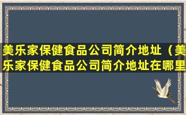 美乐家保健食品公司简介地址(美乐家保健食品公司简介地址在哪里)