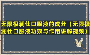 无限极澜仕口服液的成分(无限极澜仕口服液功效与作用讲解视频)