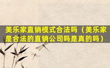 美乐家直销模式合法吗(美乐家是合法的直销公司吗是真的吗)