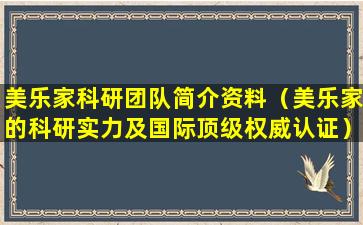 美乐家科研团队简介资料(美乐家的科研实力及国际顶级权威认证)