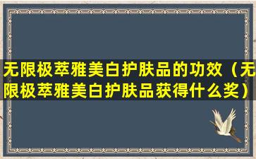 无限极萃雅美白护肤品的功效(无限极萃雅美白护肤品获得什么奖)