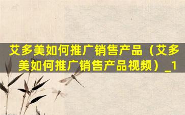 艾多美如何推广销售产品(艾多美如何推广销售产品视频)