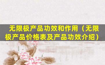无限极产品功效和作用(无限极产品价格表及产品功效介绍)