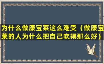 为什么做康宝莱这么难受(做康宝莱的人为什么把自己吹得那么好)
