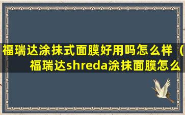 福瑞达涂抹式面膜好用吗怎么样(福瑞达shreda涂抹面膜怎么样)