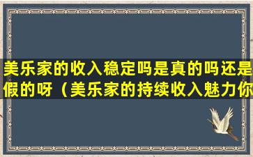 美乐家的收入稳定吗是真的吗还是假的呀(美乐家的持续收入魅力你知道吗)