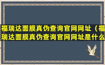 福瑞达面膜真伪查询官网网址(福瑞达面膜真伪查询官网网址是什么)