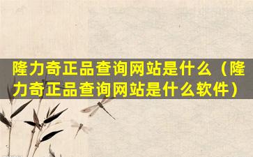 隆力奇正品查询网站是什么(隆力奇正品查询网站是什么软件)