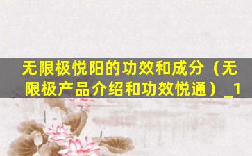 无限极悦阳的功效和成分(无限极产品介绍和功效悦通)