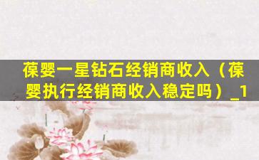 葆婴一星钻石经销商收入(葆婴执行经销商收入稳定吗)