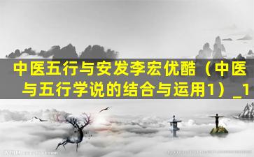 中医五行与安发李宏优酷(中医与五行学说的结合与运用1)