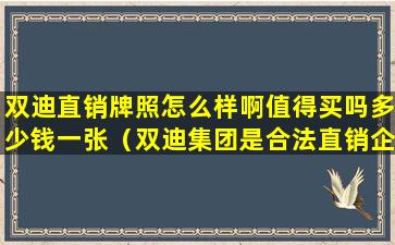 双迪直销牌照怎么样啊值得买吗多少钱一张(双迪集团是合法直销企业吗)