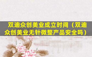 双迪众创美业成立时间(双迪众创美业无针微整产品安全吗)
