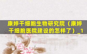 康婷干细胞生物研究院(康婷干细胞医院建设的怎样了)