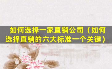 如何选择一家直销公司(如何选择直销的六大标准一个关键)