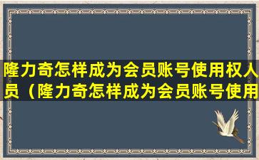 隆力奇怎样成为会员账号使用权人员(隆力奇怎样成为会员账号使用权人员的)