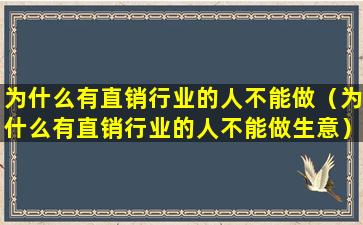 为什么有直销行业的人不能做(为什么有直销行业的人不能做生意)